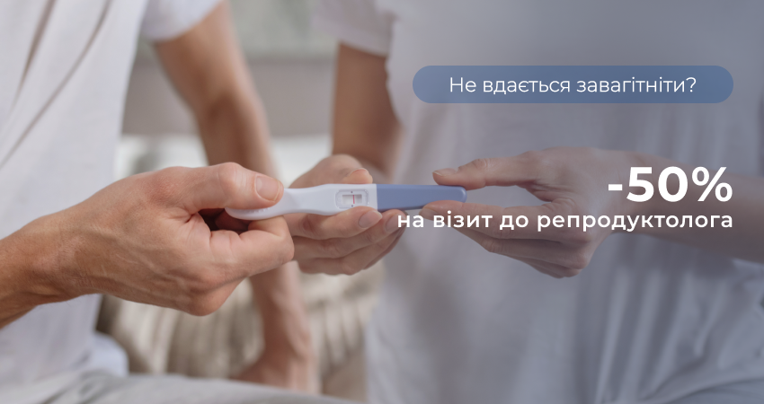 «ЗНИЖКА 50% НА ПЕРВИННУ КОНСУЛЬТАЦІЮ РЕПРОДУКТОЛОГА»