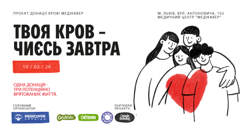 Анонсуємо особливий захід - нову донацію крові в мережі Медичних центрів Медікавер за підтримки Львівського обласного центру служби крові.