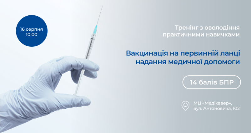 У межах проєкту «Академія Медікавер» відбудеться тренінг із оволодіння практичними навичками на тему: «Вакцинація на первинній ланці: сучасні виклики та практичні рішення».